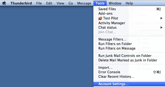 1. Start Thunderbird (Macintosh HD disk --> Applications folder --> Thunderbird app).