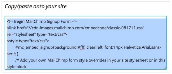 d. Below the preview is the embedded code for that simple form. Select all the text in the embedded code window, and Command-C or Control-C (PC) to copy the code. (Make sure you got it all.)