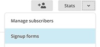 3. In the Lists view, click the Dropdown Arrow on the right, click Signup forms.